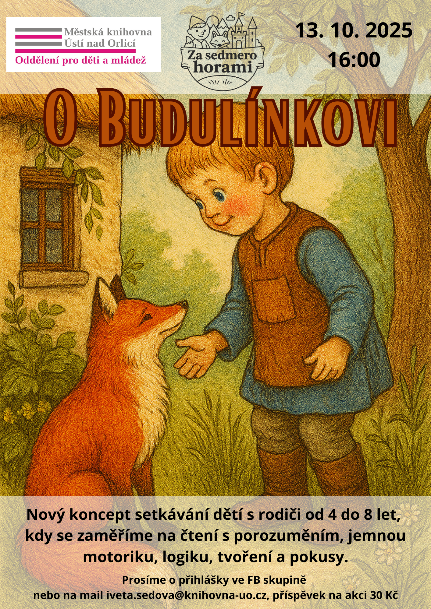 Nová verze setkávání dětí s rodiči od 4 do 8 let, kdy se zaměříme na čtení s porozuměním, logiku, tvoření a pokusy. prosíme o přihlášky ve FB skupině nebo na mail iveta.sedova@knihovna-uo.cz , příspěvek na akci 30 Kč.