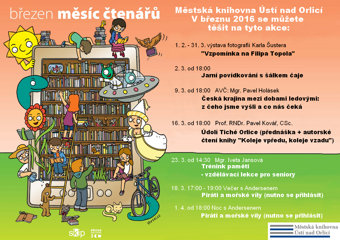 Březen měsíc čtenářů je celostátní akce, kterou pořádá Svaz knihovníků a informačních pracovníků České republiky. Také naše knihovna připravila bohatý program pro děti i dospělé.